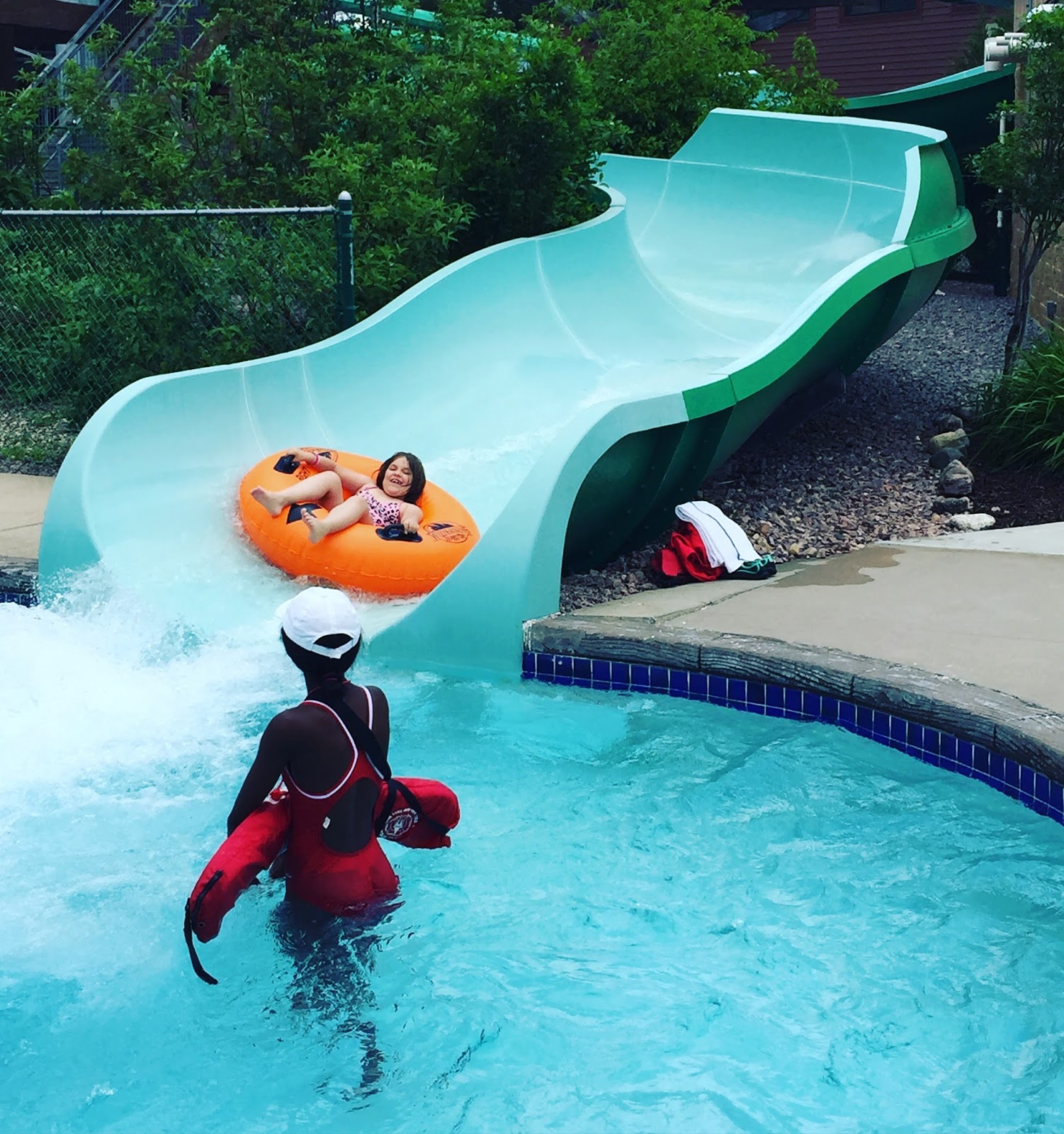 Did I mention the view? It was amazing! The above picture was taken right off of our balcony and when the kids saw the view; it was water slide time!